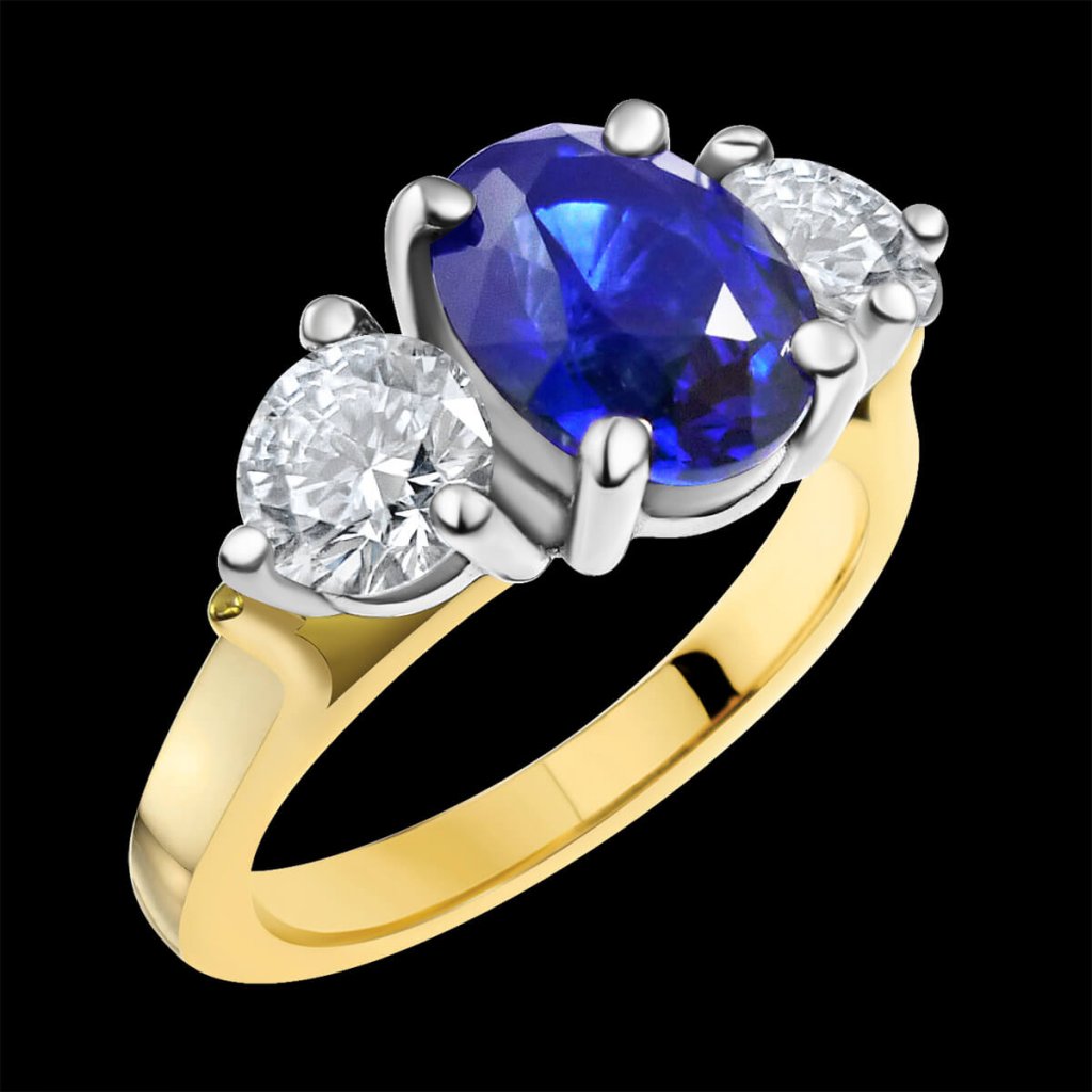 If the Solitaire style ring is not for you, Duo or Trilogy rings are the best alternative when looking for an engagement ring. This can be uniform sized stones, but for that extra special touch, a coloured stone flanked by diamonds either side is truly timeless.